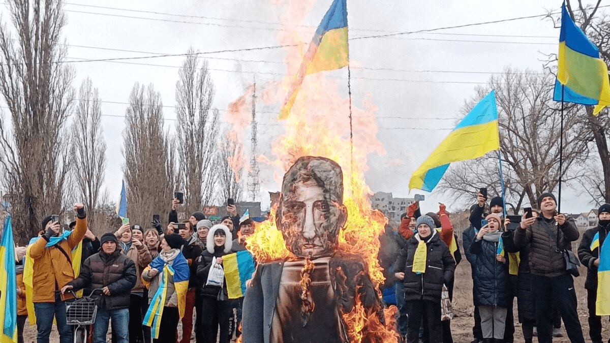 Як горіло опудало путіна та проходили мирні акції?